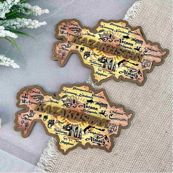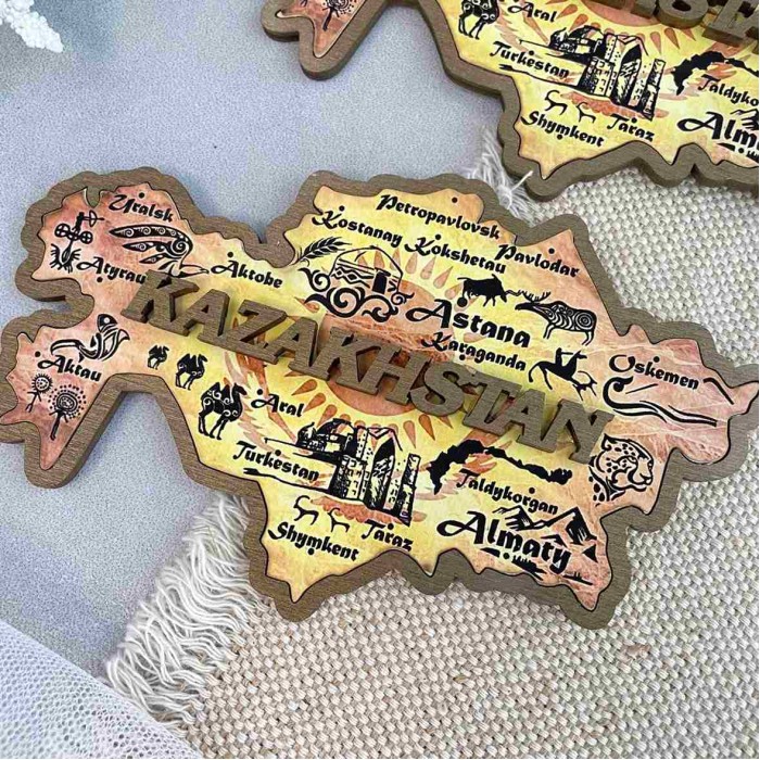 Магнит деревянный Карта Казахстана с фотопечатью Магнит упакован в индивидуальный полипропиленовый пакетик.... Читать далее...