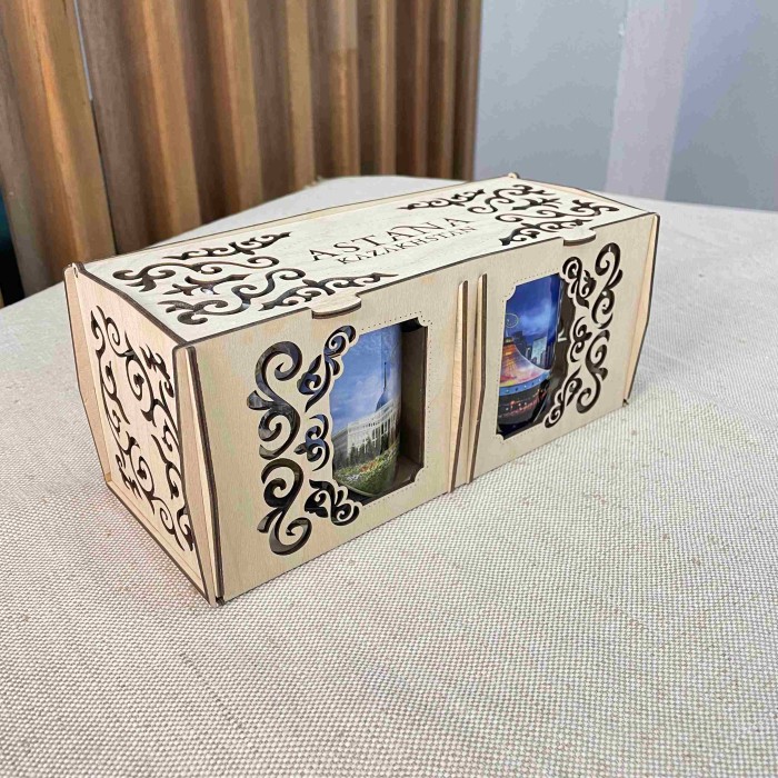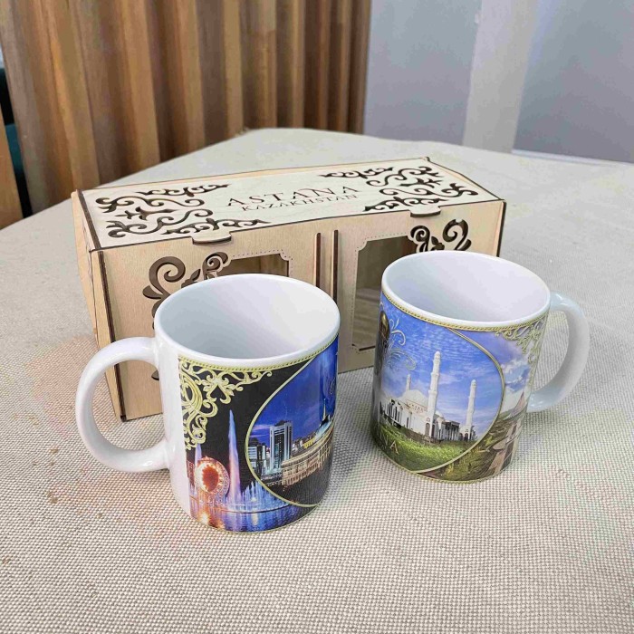 Кружки керамические 2 шт в деревянной коробке Астана...