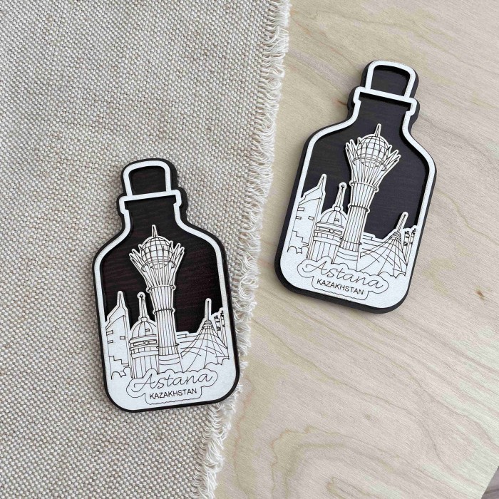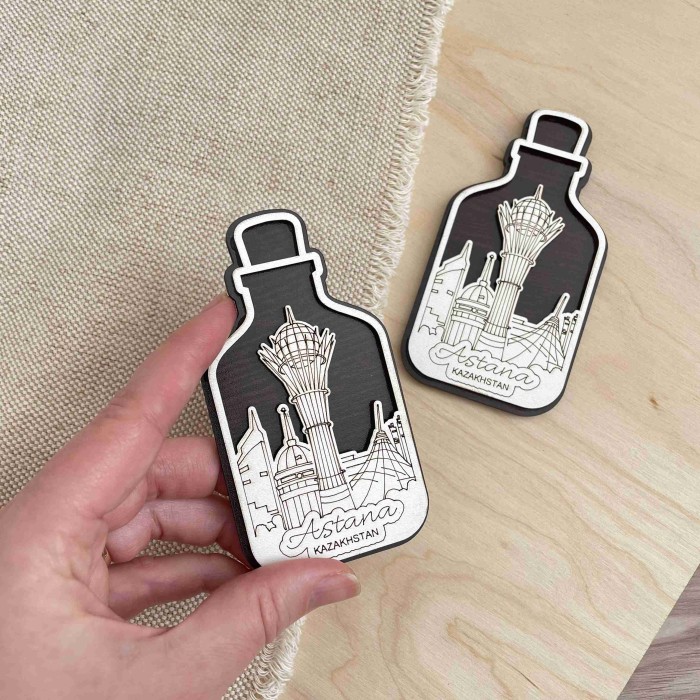 Магнит деревянный Бутыль Астана с фотопечатью