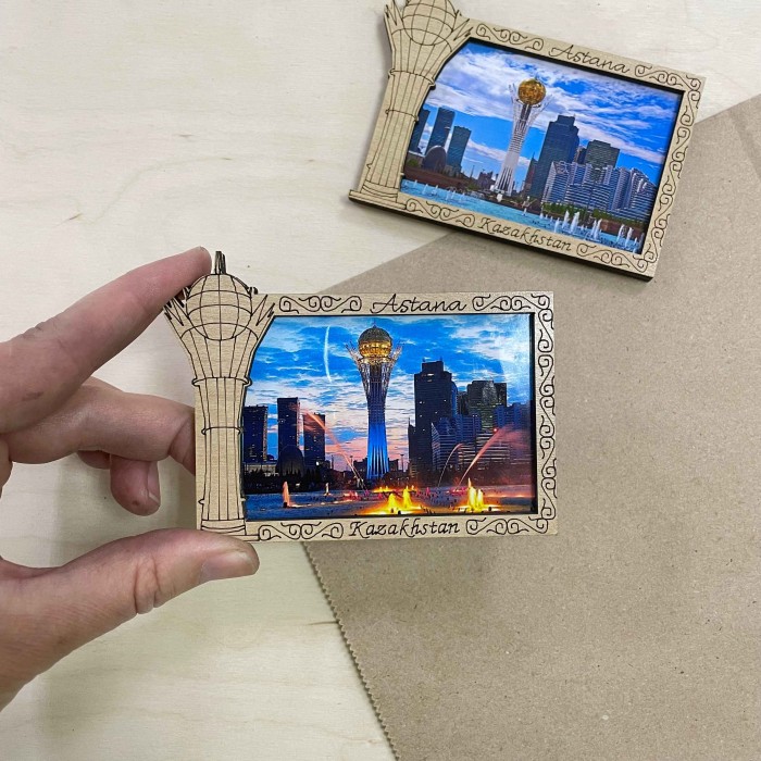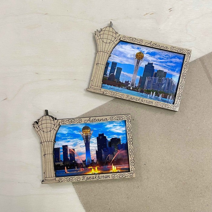 Магнит деревянный рамка Байтерек АстанаМагнит упакован в индивидуальный полипропиленовый пакетик....