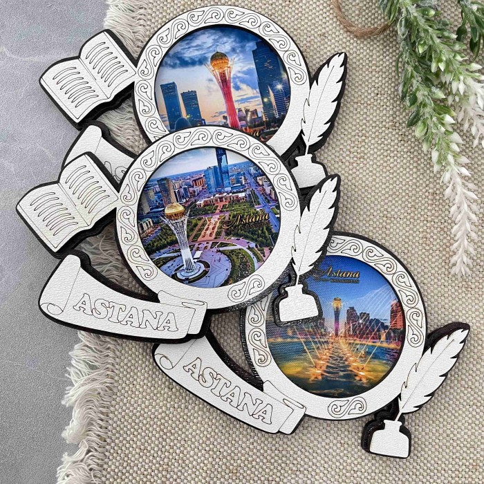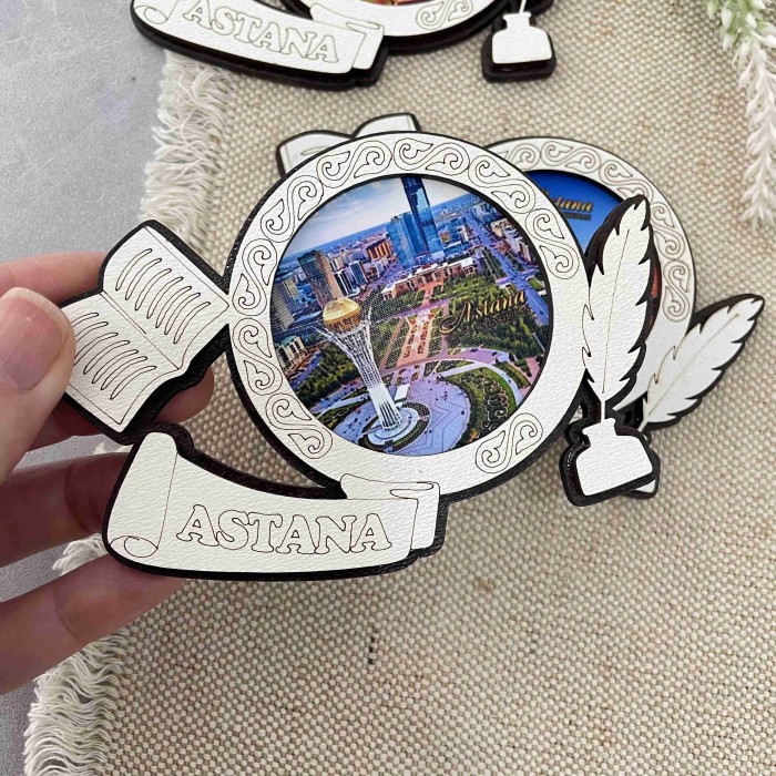 Магнит деревянный рамка круглая Книга Астана с фотопечатью Магнит упакован в индивидуальный полипропиленовый пакетик....