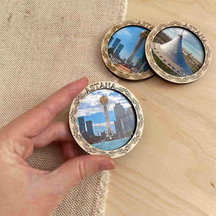 Магнит деревянный рамка Круглый Астана с фотопечатью Магнит упакован в индивидуальный полипропиленовый пакетик....