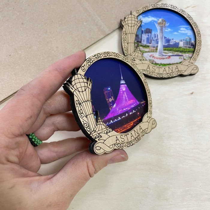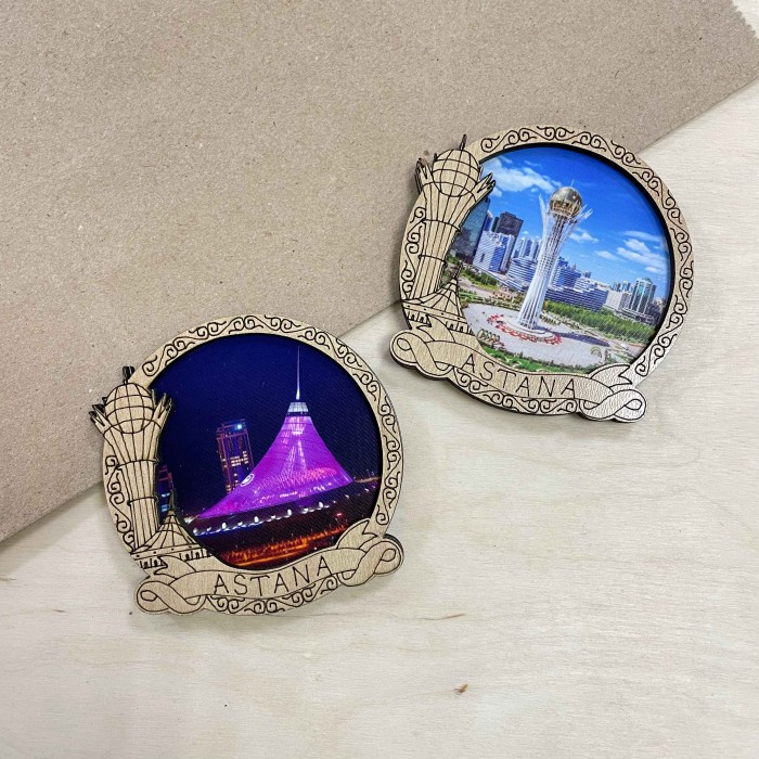 Магнит деревянный рамка круглый Байтерек АстанаМагнит упакован в индивидуальный полипропиленовый пакетик....