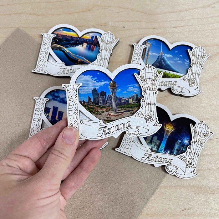 Магнит деревянный рамка сердце I Love Астана с фотопечатью Магнит упакован в индивидуальный полипропиленовый пакетик....