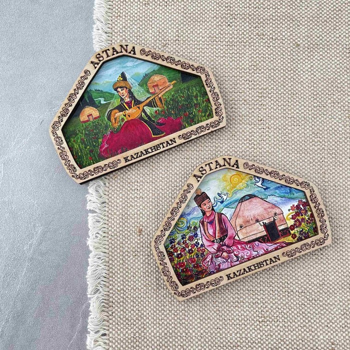 Магнит деревянный рамка Юрта Астана с фотопечатью Магнит упакован в индивидуальный полипропиленовый пакетик....