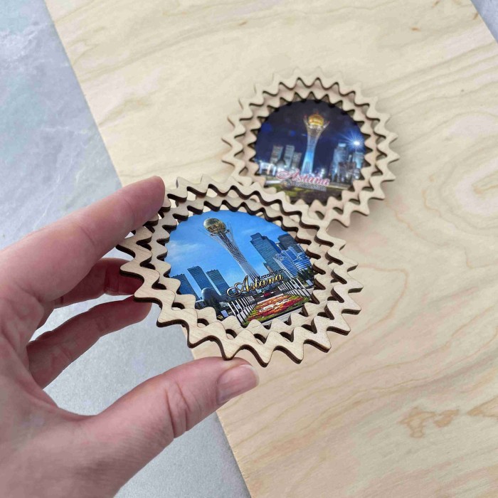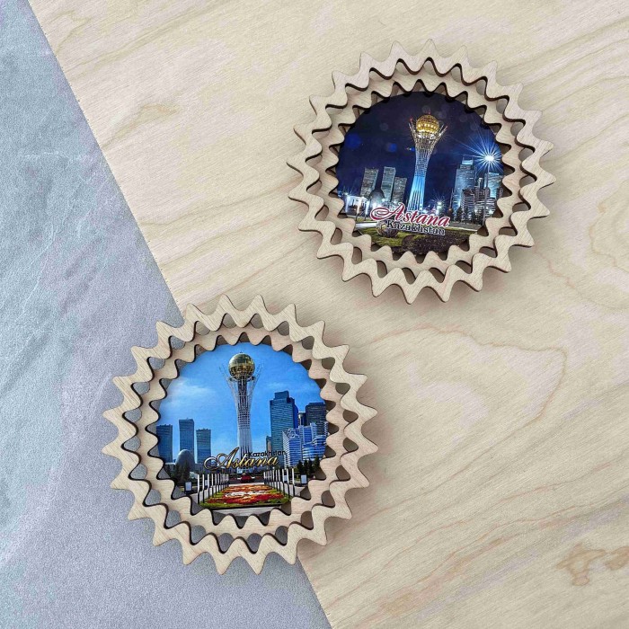 Магнит деревянный Солнце Астана фотопечатью Магнит упакован в индивидуальный полипропиленовый пакетик....