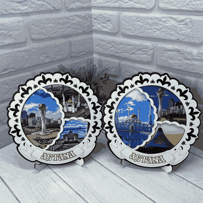 Тарелка деревянная с фото 3 Вида 20 см. АстанаТарелка упакована в индиввидуальную картонную коробку.В комплекте ножки для тарелки....