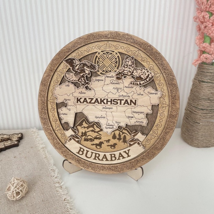 Тарелка деревянная 3D темная Карта 20 смТарелка упакована в индивидуальную картонную коробку.В комплекте ножка-подставка...
