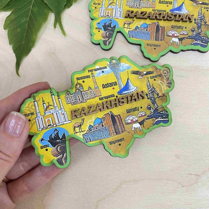 Магнит деревянный Карта Казахстана с фотопечатью