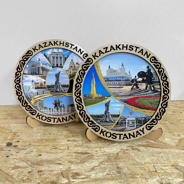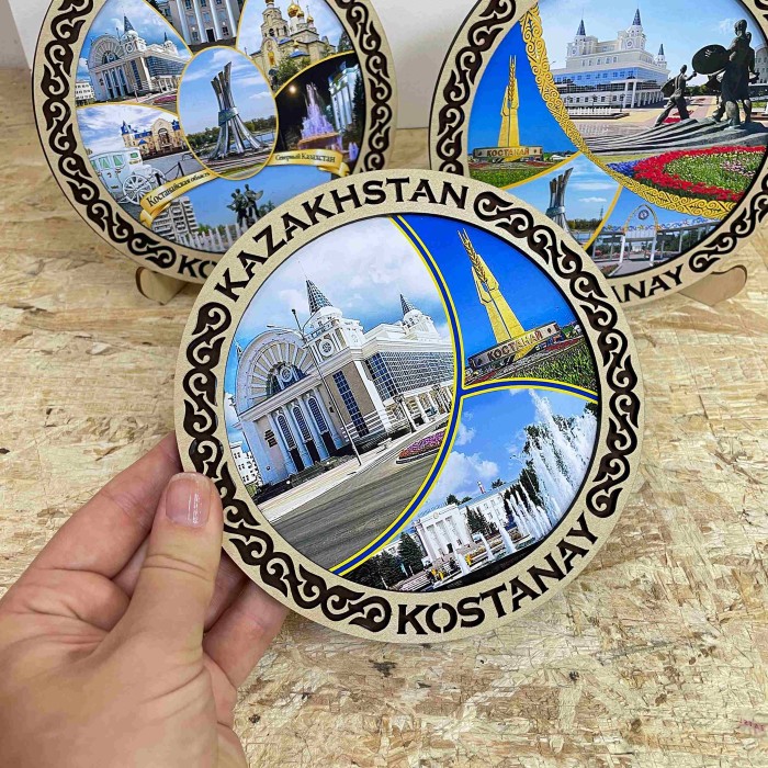 Тарелка деревянная с фото Орнамент 15 см. КостанайТарелка упакована в индиввидуальную картонную коробку.В комплекте ножки для тарелки....